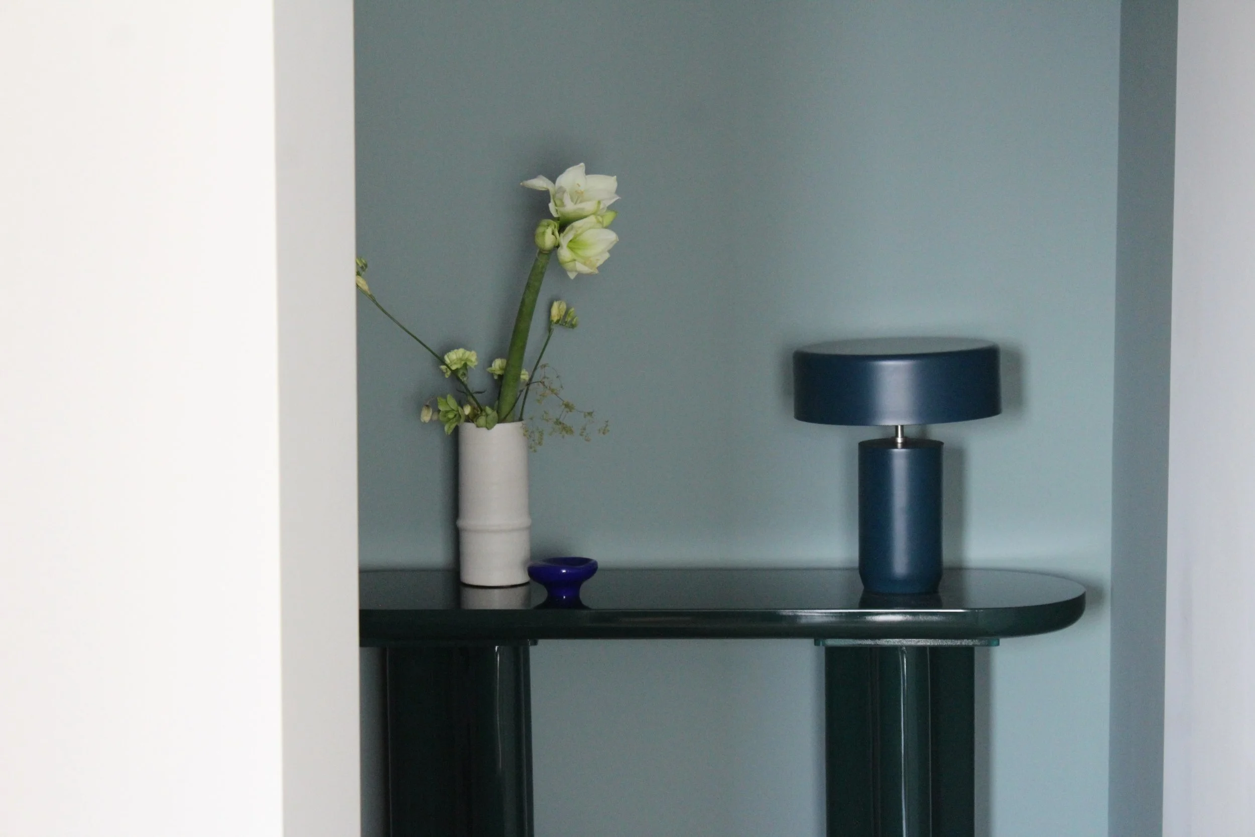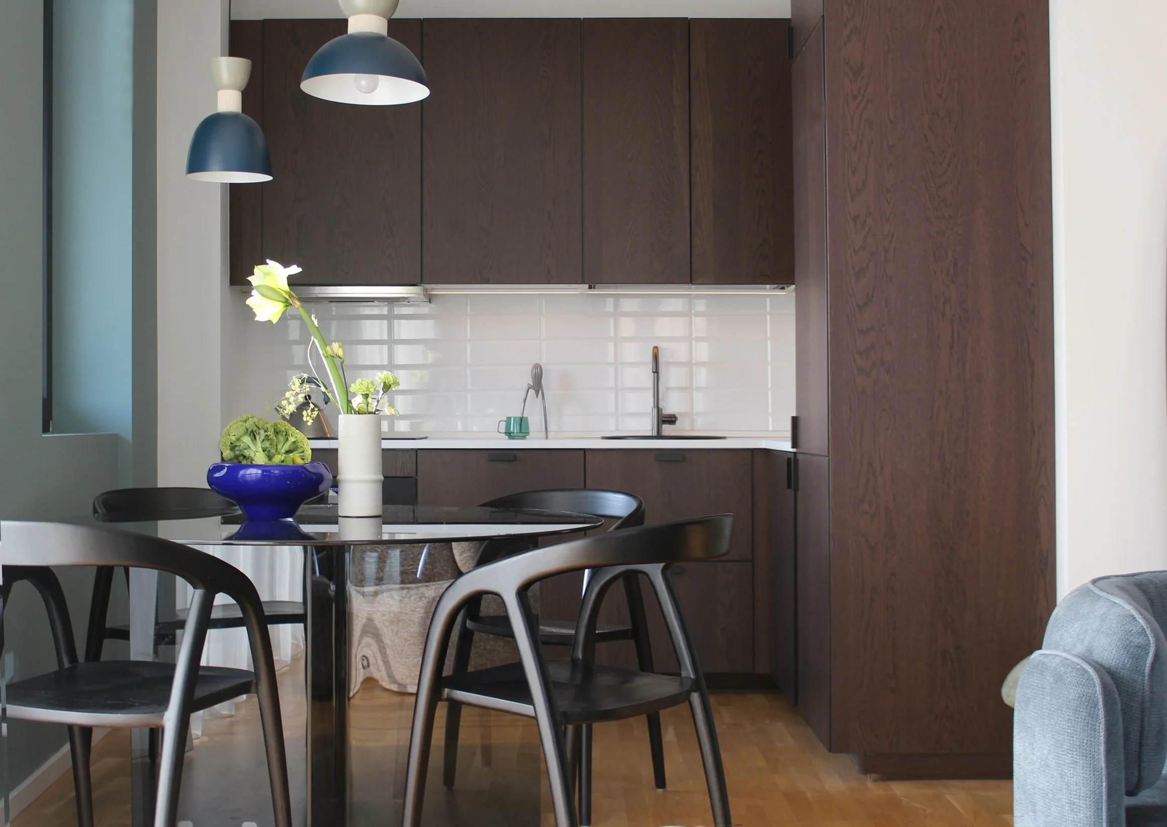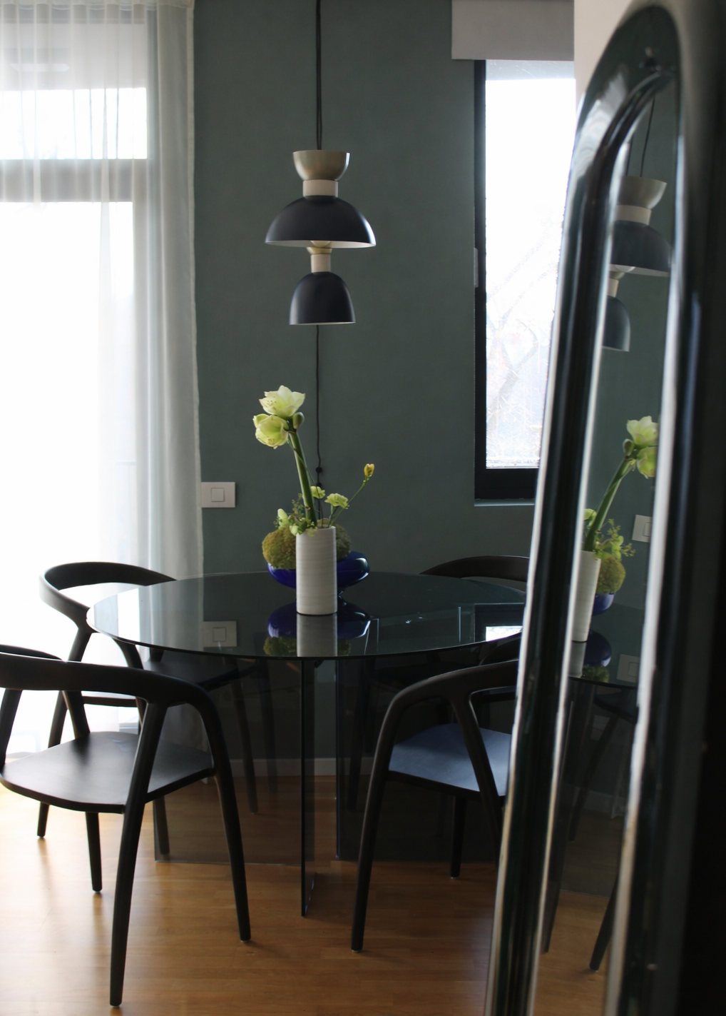 Rezultatul este un spațiu imersiv și coerent, o locuința care nu doar găzduiește, ci comunică o stare de spirit. Este o demonstrație a modului în care culorile închise pot genera luminozitate prin contrast și în care simplitatea formei poate atinge un nivel maxim de rafinament